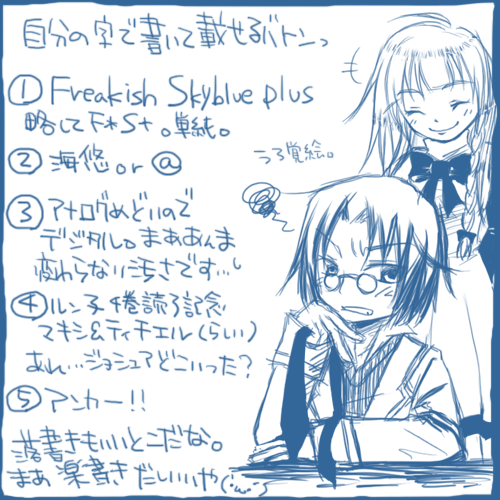久々にお絵かきしたかったのもあったので、じゃあバトンやっちゃえ☆みたいな?(…)