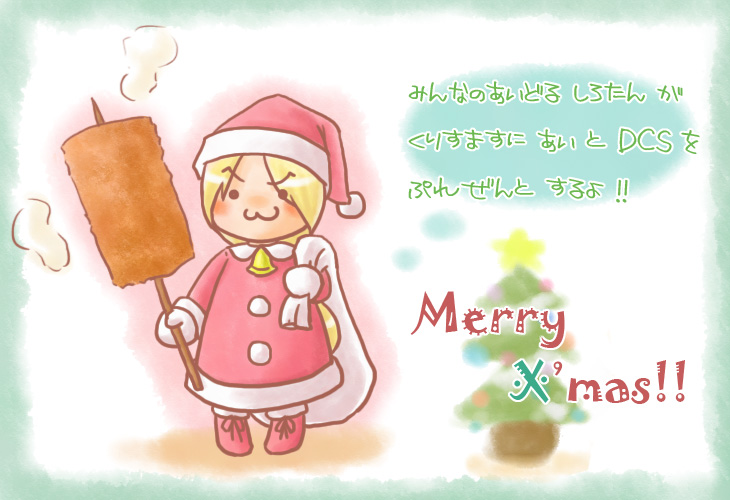 チャームポイントは後ろで飛び散ってる一見プレゼントに見える例の赤い物体かな!