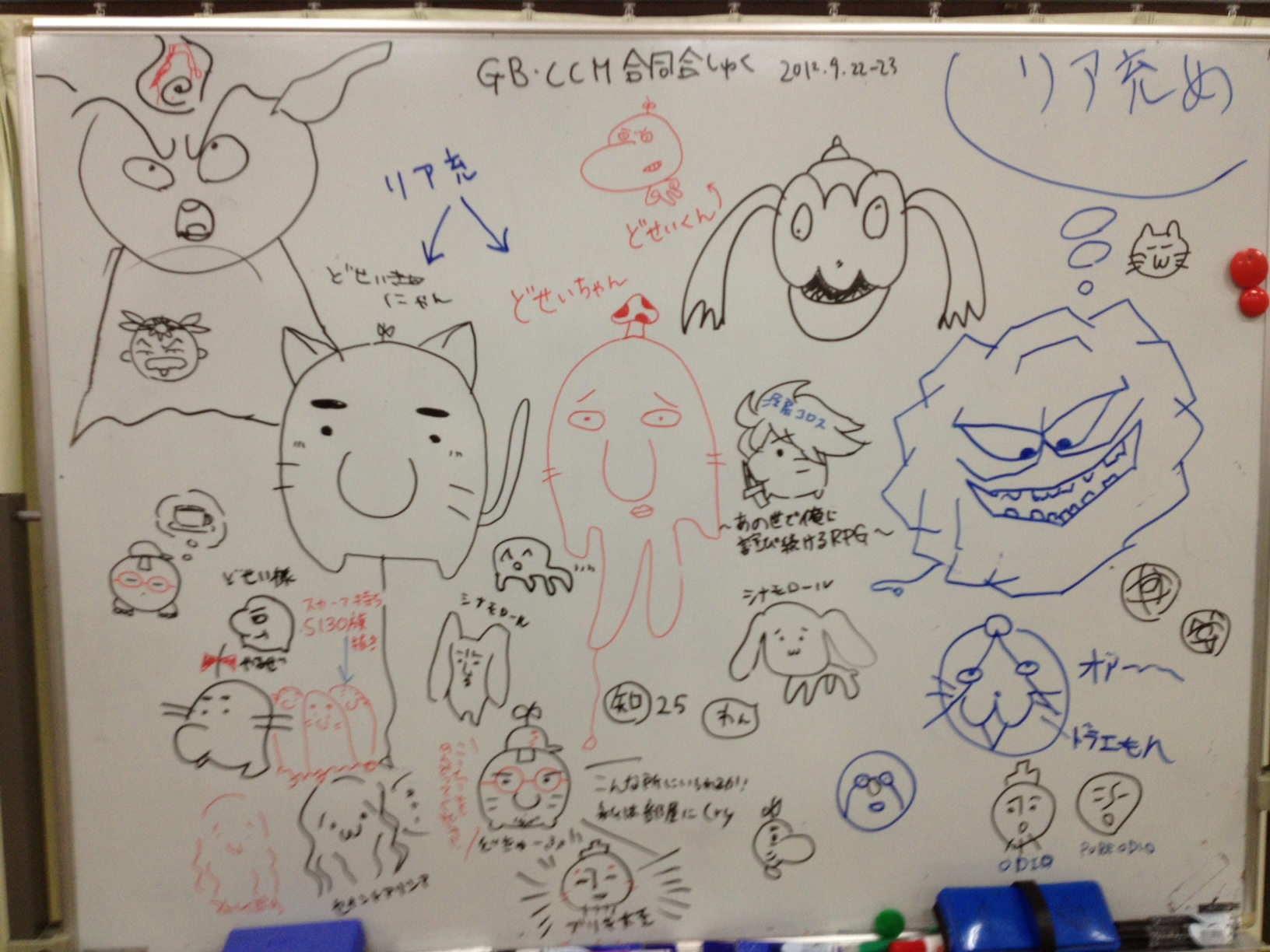 途中ホワイトボードにがんがんお絵かきしてみたり。